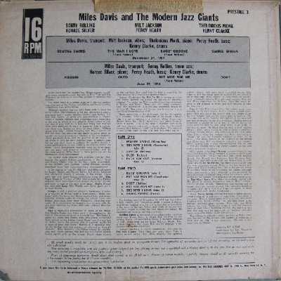 NOT YET FOUND Miles Davis and the Modern Jazz Giants Prestige 3 |