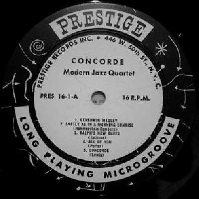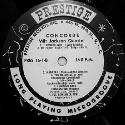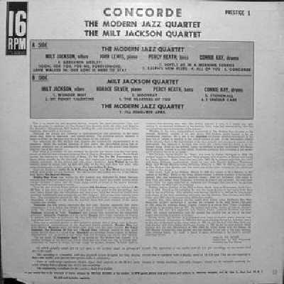 NOT YET FOUND Modern Jazz Quartet and Milt Jackson Quartet Concorde Prestige 1 |