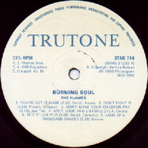 |  | Burning Soulunknown Note: reasonable to assume this exists |  | SoulfireTrutone SRMG 51234 Matrix: Note: same configuration as the original black label stereo release |