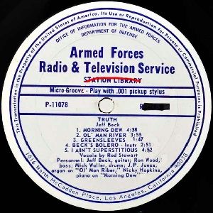 AFRTS record with Jeff Beck on side A and In-A-Gadda-Da-Vida on side B